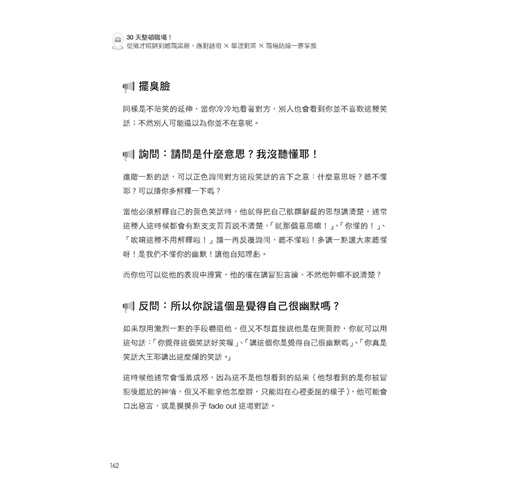 這本書乍看是嚴肅的工具書,但其書寫兼具犀利觀察與幽默筆觸。讀者可以清楚看到作者如何不卑不亢地反擊職場潛規則,拒絕在權勢壓迫下妥協。