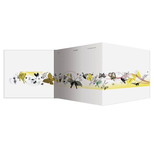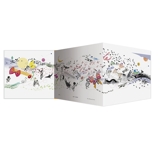 而頁面上那顆陪伴著小女孩前進、玩耍的小圓球,都特別以燙黑處理,同時內頁還有局部鏤空⋯⋯等繁複加工,最終的故事高潮處更是有著「讀者必須用手展開」才能看到完整風景的巧妙設計。可以說本書的做工精緻無比、細節無處不在。Suzy Lee高明地拓寬了讀者對紙本書物理性質的認知,也讓人對她作為一位「書籍藝術家」的想像有了更進一步的認識。要能感受本書的動人趣味和印刷裝幀工藝,一定要親手翻閱實體書。