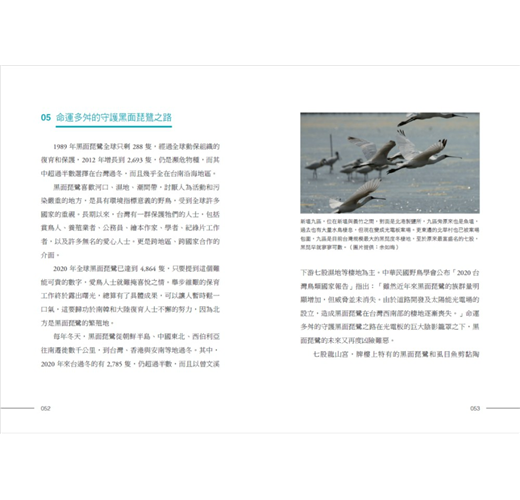 黑面琵鷺喜歡河口、濕地、潮間帶,討厭人為活動和污染嚴重的地方,是具有環境指標意義的野鳥,受到全球許多國家的重視。長期以來,台灣有一群保護牠們的人士,包括賞鳥人、養殖業者、公務員、繪本作家、學者、紀綠片工作者,以及許多無名的愛心人士。更是跨地區、跨國家合作的介面。