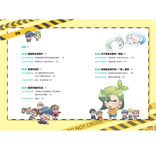 ✦每章節搭配一篇科學報告,全書總共包含五個不同的主題,包含光降解現象、動物的智力、颱風命名法則、平年/閏年與植物的防禦機制等知識點。