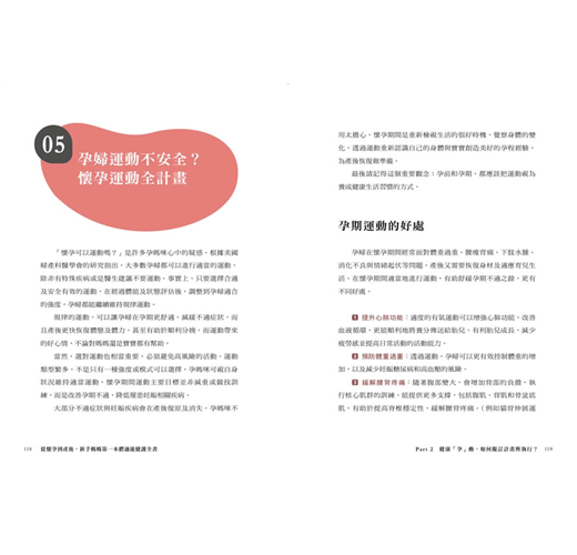 • 結合復健醫學、體適能專業與科學實證,提供孕產期安全可行的運動指南。