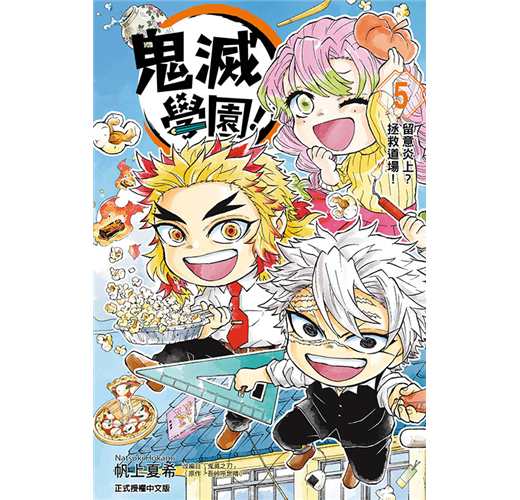 這裡是國小國中高中一貫的私立學校‧鬼滅學園── 鬼滅學園的學生跟老師們, 每天在學園內外都似乎很開心! 替時透兄弟的爭吵進行判決, 聽說了煉獄老師老家的道場在經營上的煩惱? 甚至連禰豆子的戀愛話題也造成騷動──? 手忙腳亂的學園搞笑漫畫,第5集!