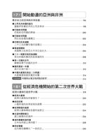 此外,本書亦特闢專章介紹美國的革命與國家的成長,以及新帝國主義壓力下亞洲與非洲的困境。美國的世界霸權與亞、非洲的反殖民運動,是二十世紀世界史的重要現象。