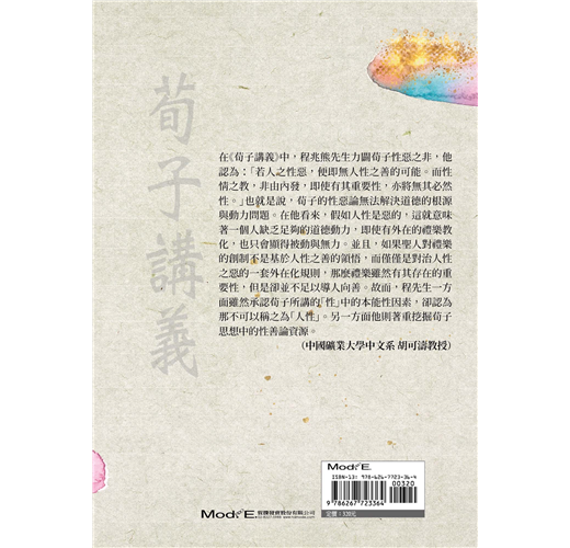 訂購本商品前請務必詳閱退換貨原則。在《荀子講義》中,程兆熊先生力闢荀子性惡之非,他認為:「若人之性惡,便即無人性之善的可能。而性情之教,非由內發,即使有其重要性,亦將無其必然性。」也就是說,荀子的性惡論無法解決道德的根源與動力問題。在他看來,假如人性是惡的,這就意味著一個人缺乏足夠的道德動力,即使有外在的禮樂教化,也只會顯得被動與無力。並且,如果聖人對禮樂的創制不是基於人性之善的領悟,而僅僅是對治人性之惡的一套外在化規則,那麼禮樂雖然有其存在的重要性,但是卻並不足以導人向善。故而,程先生一方面雖然承認荀子所講的「性」中的本能性因素,卻認為那不可以稱之為「人性」。另一方面他則著重挖掘荀子思想中的性善論資源。(中國礦業大學中文系 胡可濤教授)