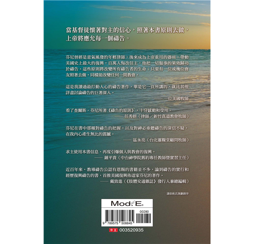 為什麼每位基督徒都應該精通芬尼的禱告原則?因為所有基督徒都需要真實明確、完整合理、可以透過經驗證實的聖經教導。這些原則曾經使千萬人蒙福,帶領不計其數的群眾歸向救主,為上帝的國度成就重要事工。芬尼在自傳中寫道,當他在奮興會講道,「盡力使會眾明白──只要他們符合上帝應允禱告的條件,上帝會立刻回應;特別是他們存著信心,期待上帝垂聽他們祈求的時候。」當基督徒懷著對主的信心,符合本書陳述的條件,上帝將應允每一個禱告。芬尼的禱告原則是從很多劬勞的禱告中產生的,本書附錄將說明禱...