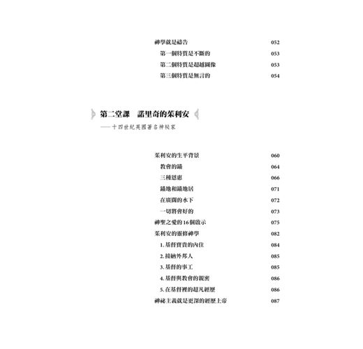 中世紀的茱利安在她生命垂危中的靜修默觀,竟然孕育了她對神聖之愛的啟示各種深刻的靈修體會;要了解她默觀的「錨地」—— 隱居祈禱的地方——如何形塑她成為切慕神的門徒,她為何看生命如榛子,視愛就是神的意圖;神如母親般看顧我們,祂將使一切變得美好。你要讀這些動人的靈性內容嗎?