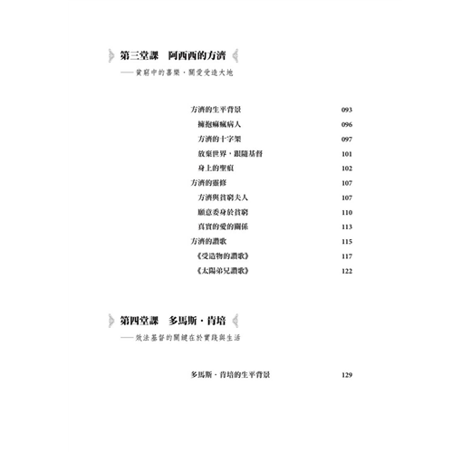 我們來到這些人物面前,正如埃提阿伯的太監在使徒行傳八章中來到以賽亞書卷前:「若沒有人指教我,怎能明白呢?」同樣地,本書各篇章,也擔當著教導者的角色,幫助讀者學習八位靈修大師的生命智慧,明白他們的言行榜樣如何帶來生命的轉化。透過向這八位屬靈大師學習,盼望讀者不僅能夠得著上帝的光照,還能帶來更深刻的悔改、更偉大的愛,進而更忠心地與上帝同行。