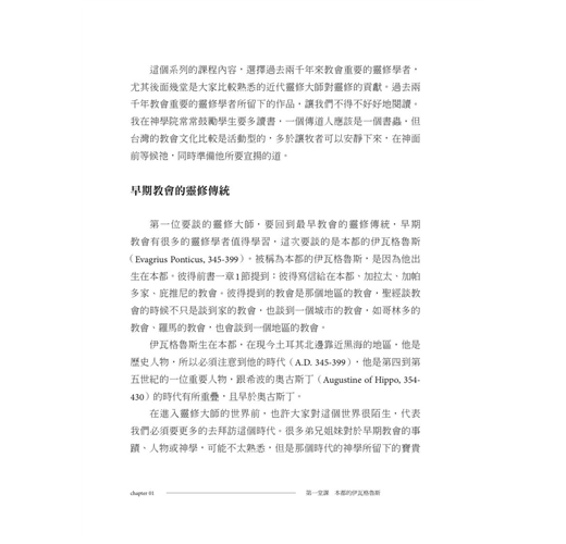 在進入靈修大師的世界前,也許大家對這個世界很陌生,代表我們必須要更多的去拜訪這個時代。很多弟兄姐妹對於早期教會的事蹟、人物或神學,可能不太熟悉,但是那個時代的神學所留下的寶貴教導,跟今天的神學與信仰有著密切的關係,包括伊瓦格魯斯教導的靈修原則,甚至於他的靈修原則也影響到今日的醫學研究。