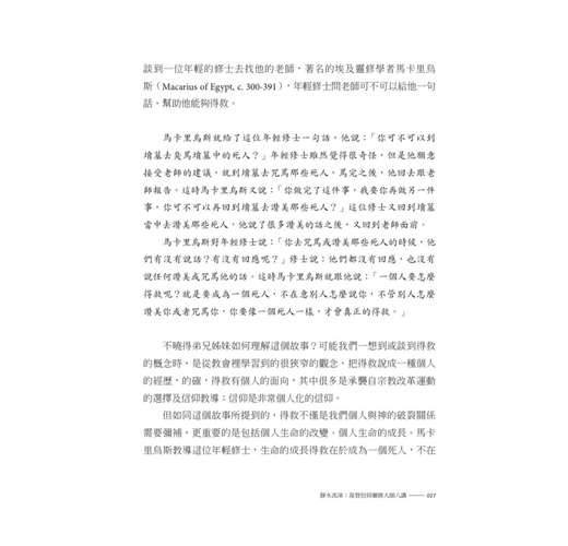華人教會缺乏歷史感,追求新潮,在多元變幻的世俗迷失了。周老師以充滿活力和生命力的文字,回訪歷史、探索先賢的內心掙扎,值得你仔細和默觀的閱讀。這書的神學表述並不深澀,但條理分明,入木三分,蘊含著牧養情懷,每一個章節都像在邀請你接觸自己的心靈,鼓勵你去重尋更新和勇氣。