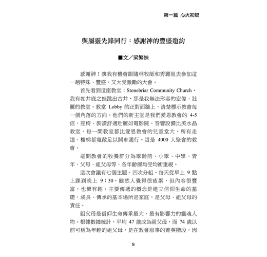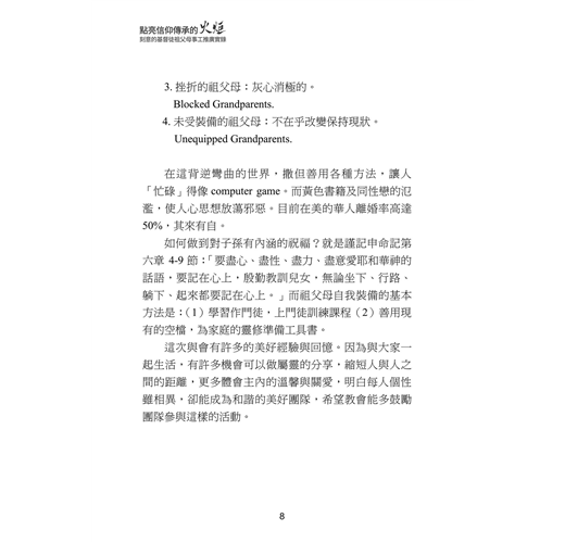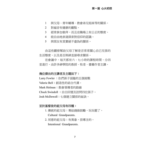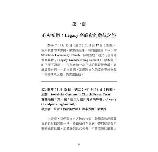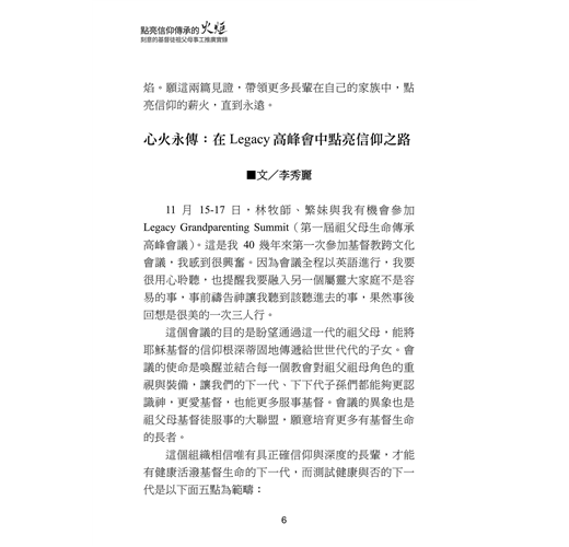 • 2022年:第一本中文版教材《刻意的基督徒祖父母》出版,事工進入落地與擴展階段;