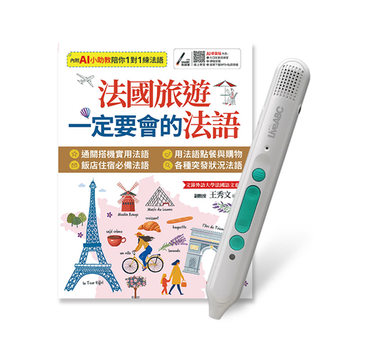 書中隨附由外籍教師親自錄製的MP3,讓你一邊學習一邊聆聽標準發音,也可搭配點讀筆使用(點讀筆需另購),強化聽說能力,提升學習效率。不僅如此,你還能透過「AI小助教」進行口說練習,只需掃描書末QR Code 或輸入網址,即可立即開啟實戰練習,累積更多開口說法語的自信與經驗!