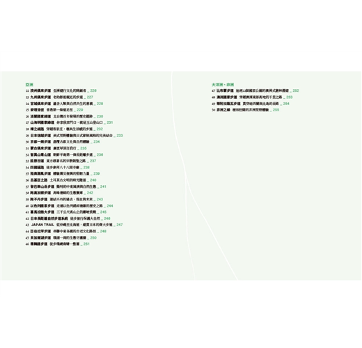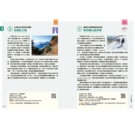 書中精選步道,除介紹步道故事、自然特色、歷史背景、文化意義、旅人經驗分享及體悟等;更由達人整理實用資訊,讓讀者可以具體規劃最適合自己的路徑: