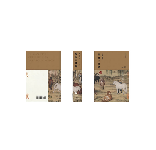 版式和尺寸上,32開本、130x190m、圓背精裝,書腰圖「清郎世寧八駿圖 軸」,搭配封面包裹大地色絲光綿燙黑字,顯溫暖高雅質感、古情新意。