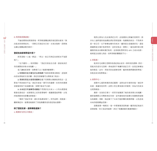 阿芳皺起眉頭:「那我是不是完全不該把公司登記在家?」我笑了笑,安慰她:「別急,還有其他要考量的因素。」