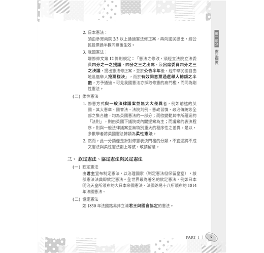 除了理論型、綜合型的釋字與憲法判決外,憲法與憲法增修條文的規範內容,也是準備重點。本書將大法官於憲法案例中之說理,予以簡化,並融合相關條文,輯成本書之論述段落,再透過關鍵字型的設定,將常考及概念理解上所不可或缺的文字加以標示,有助於讀者加強記憶點,成就高人一等的奪分能力!