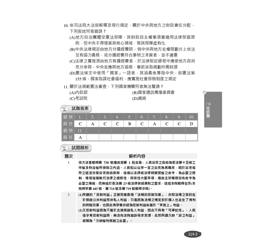 為充分發揮輔考功能、幫助考生鍛練上榜體質,本書附帶收錄113-114年歷屆試題,包括公務人員高考三級、普通考試、司法人員三、四等考試、一般警察及警察人員三、四等考試,且題題詳解。在考試之前,請務必使用本書附錄練習作答,不僅能綜合評量應考狀態,也能清楚瞭解尚待加強之處,有助於穩定取分、減少失誤。