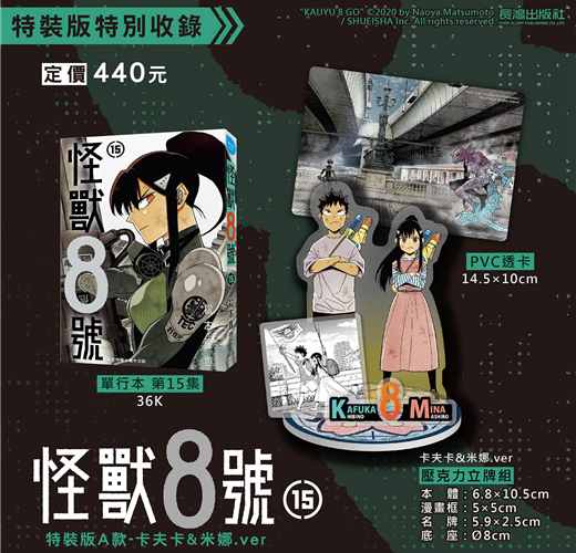 ●壓克力立牌組 卡夫卡&米娜.ver(本體:6.8×10.5cm;漫畫框:5×5cm;名牌:5.9×2.5cm;底座:Ø 8cm)