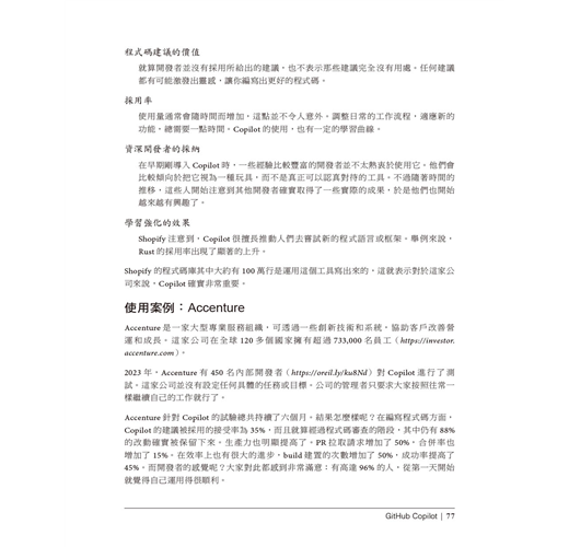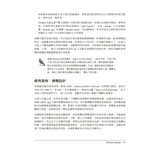 「我們在六個星期內,就把向量搜尋的功能順利加入Cassandra,其中Copilot和ChatGPT絕對是我們能在期限內完成任務的重要關鍵;不過,大多數開發者卻不知道該如何善用這類AI工具。Tom這本書就是很棒的入門方式,可以讓你省下無數嘗試錯誤的寶貴時間。」
