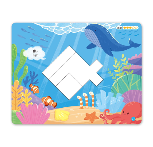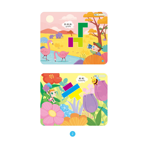 孩子們既可以根據遊戲卡片拼出對應的圖形,也可以自行創造新的圖形。隨著熟練度增加,遊戲卡片逐漸增加片數與難度,激發孩子思考,鍛鍊邏輯思維,拓展孩子對幾何形狀的概念,是孩子成長過程中不可或缺的最佳益智教具!