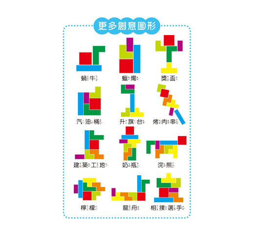 5. 提升腦力發展:遊戲過程中培養觀察與邏輯推理能力,也可以自行組合出無數種圖案,激發孩子的想像力和創造力。