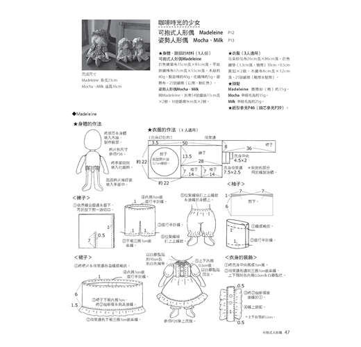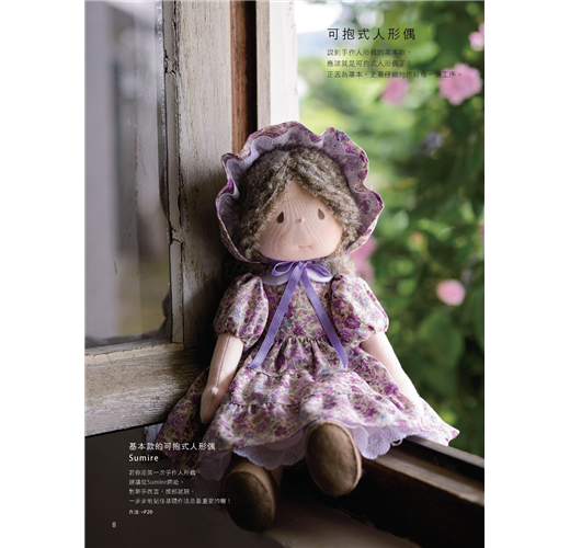 以此四種基本作法即可作出布置擺飾、陪伴娃娃、換裝娃娃等不同的類型,且針對不同作法皆以詳細的分解步驟圖進行示範解說;從人形偶主體的製作、充棉&身體組件的接連方式、頭髮造型&臉部表情呈現,到衣服的縫製&接縫皆有教作。請跟著作者的詳細解說&重點提點進行縫製,作出專屬於你的可愛人形偶吧!