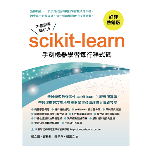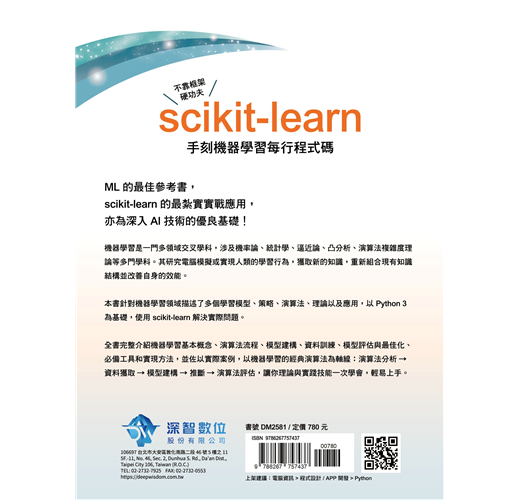 本書特色ML 的最佳參考書,scikit-learn 的最紮實實戰應用,亦為深入 AI 技術的優良基礎!