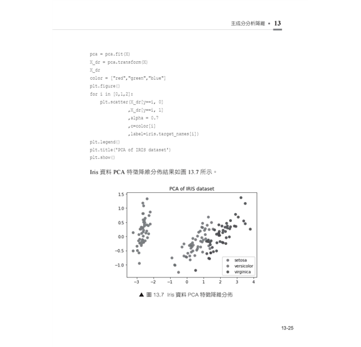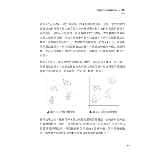 本書共分 13 章,系統講解機器學習的典型演算法,內容包括機器學習概述、資料特徵提取、scikit-learn 估計器分類、單純貝氏分類、線性回歸、k 近鄰演算法分類和回歸、從簡單線性回歸到多元線性回歸、從線性回歸到邏輯回歸、非線性分類和決策樹回歸、從決策樹到隨機森林、從感知機到支援向量機、從感知機到類神經網路、主成分分析降維。