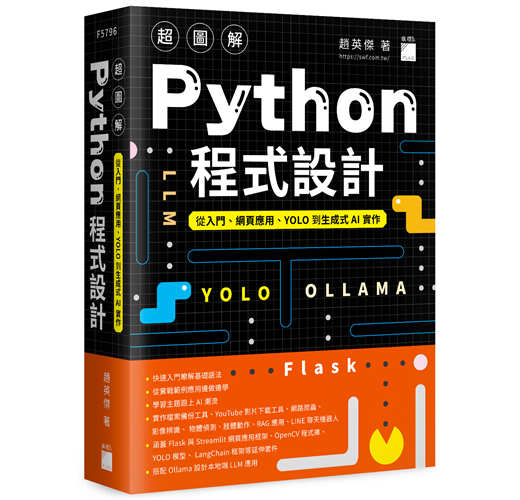 在許多實作應用的場合,光是瞭解程式語法是不夠的,像建構網路應用程式,還需要具備網路、防火牆、資料庫系統、租用並在雲端空間部署應用程式...等,還有 AI 影像偵測及大型語言模型應用背後的類神經網路 / 深度學習、模式辨認、評估指標、量化、詞嵌入向量...等概念,本書也針對這些基礎做了全方位的說明。某些 Python 入門書籍沒有觸及的部分,例如:物件導向程式設計,因為很重要,所以筆者也用幾個淺顯實用的案例圖解說明。