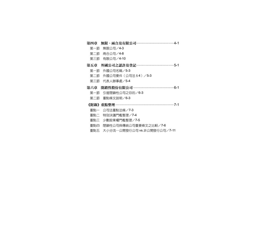 本書蒐錄所有公司法重要考點,並依公司法原有體系加以編排,藉以建立考生完整架構。