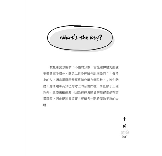 一書完整涵蓋初試筆試到複試試教、口試三大關卡。