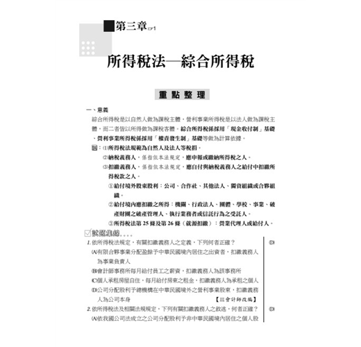 這本書就是你的秘密武器。把艱澀法條變成白話重點,搭配圖表整理,讓你一看就懂、不再死背。更棒的是,歷屆考題直接融入章節重點,讀完馬上練,出題方向一清二楚!不論你準備高普考、會計師、記帳士或初等考,都能快速抓到核心,建立解題信心。買這本書=省時、省力又高分,考場輕鬆駕馭。