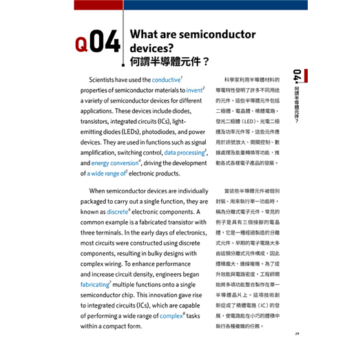 這本專為非理工背景讀者打造的「半導體科普雙語書」,將複雜的晶片知識化繁為簡,帶你輕鬆理解晶片製程與專業詞彙,洞悉二十一世紀最關鍵的核心產業,開啟與全球接軌的全新視野!