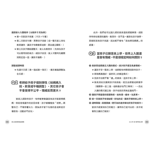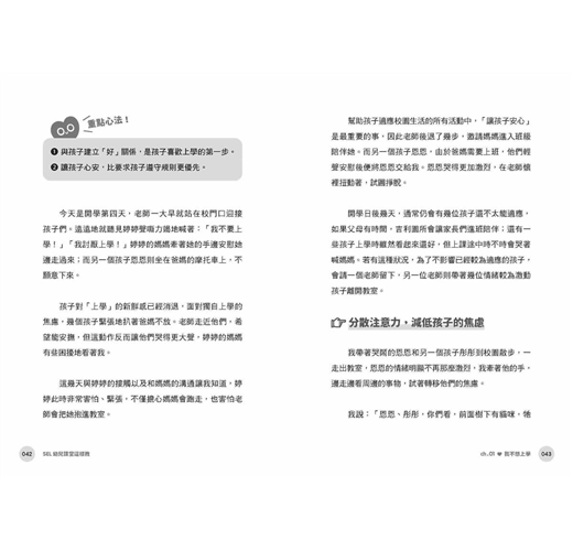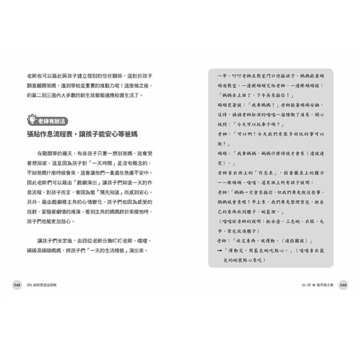 書中收錄孩子在幼兒園最常遇到的問題,並轉化為具體的教學課程: