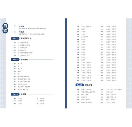 本書採用「東拼西湊」編排法,將每個部件放置於上下左右中不同位置,系統化訓練筆畫與部件的靈活運用。透過這種方式,讀者能清楚理解每個部件在不同字中的變化與結構,逐步建立字型的穩定感與美感。不論是初學者還是有基礎的練字者,都能透過反覆練習,掌握行楷結構的核心規則,寫出端正而自然的筆跡。