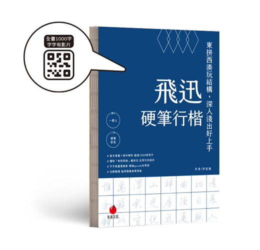 為了讓練字過程更直觀,本書搭配1000字高畫質QRcode教學影片,讀者可隨時掃描觀看筆順、筆畫力度與結構示範。影片呈現細膩的書寫過程,讓讀者在觀察與模仿中,即刻掌握正確手感與運筆技巧。這種視覺化的學習方式,不僅提升練字效率,也能加深對筆畫結構的理解,讓每一次練習都更加扎實與精準。