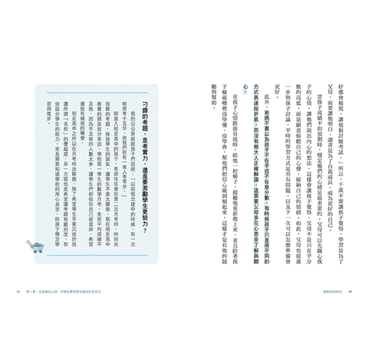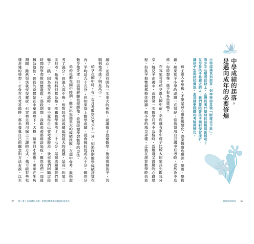 孩子進入中學後,不單是身心靈出現變化,課業難度也變深、變廣、變複雜。如果孩子小學的成績一直很好,當他發現自己國中月考時,竟然會不及格,你能想像,孩子有多恐慌嗎?