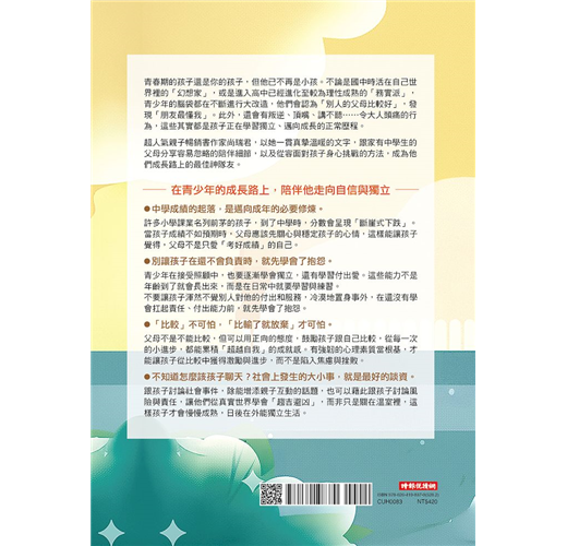 青春期的孩子還是你的孩子,但他已不再是小孩。不論是國中時活在自己世界裡的「幻想家」,或是進入高中已經進化至較為理性成熟的「務實派」,青少年的腦袋都在不斷進行大改造,他們會認為「別人的父母比較好」,發現「朋友最懂我」。此外,還會有叛逆、頂嘴、講不聽……令大人頭痛的行為,這些其實都是孩子正在學習獨立、邁向成長的正常歷程。