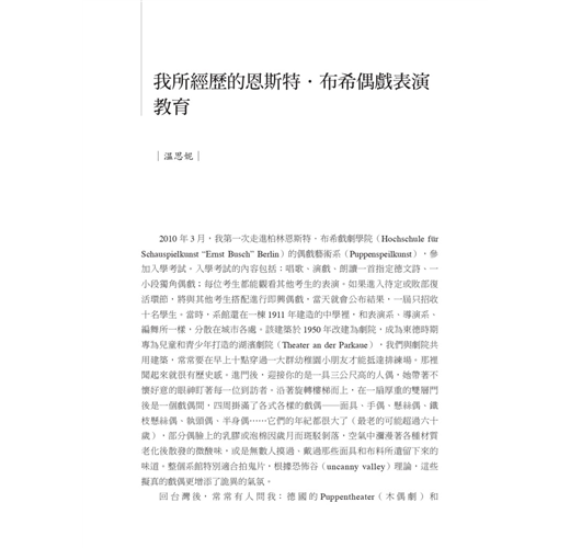 我所經歷的恩斯特.布希偶戲表演教育 /温思妮