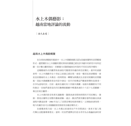水上木偶藝影:越南當地評論的流動/潘氏春瓊