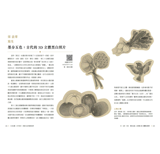 一件作品為何讓人感到精采?為何感動?為何偉大?必定有其原因,不會平白無故地達到上述的審美品質,也絕非單靠外在條件就能脫穎而出。許多與藝術品質無關的外在條件與特徵,往往都能透過模仿輕易完成,唯有筆墨才能與創作者緊密結合,展現出獨一無二的特質。正値百年院慶之際,本書特別精選出書法、山水、人物、花鳥共一百件共襄盛舉,其中包含前人的成果,也有當前的考量。書中將透過實際的觀看引導,向讀者介紹作品中最精采動人的部分,試圖走出屬於國立故宮博物院的書畫研究新方向。
