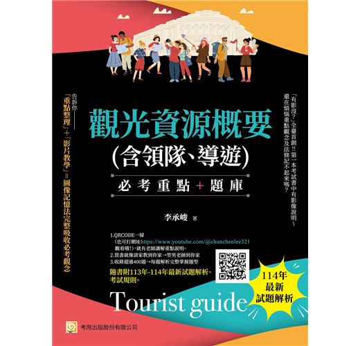 2.隨書附贈考試新制下的最新「113、114年領隊導遊評量測驗觀光資源概要題目解析」。