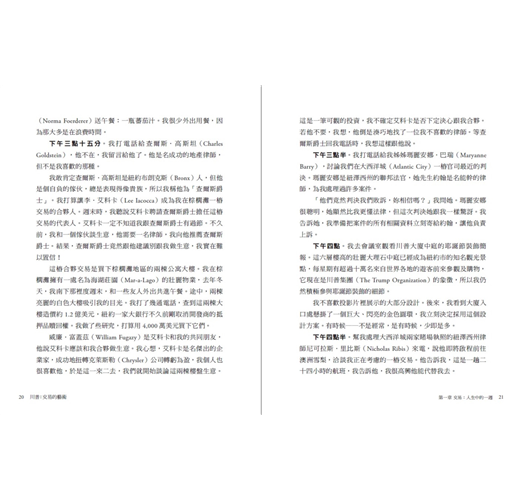 ✦ 談判桌上的藝術:書中收錄川普多場經典地產交易,從如何操盤到如何製造優勢,處處展現他掌握對話節奏與壓力槓桿的談判手腕。