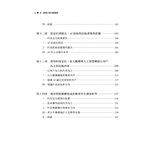 這是筆者第一本針對出版產業、新媒體(介)與人工智能所撰寫的專書。回想自己在出版產業的時間與經驗,幾乎有超過20年時間。從業界轉向學術界,也快十年時間。總歸一句話,我本屬出版人,就應該為出版產業多想一些建議與作法。