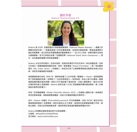 龍貓在當地的角色,早已從新奇的外來物種,轉變為受到廣泛認同與珍視的家庭成員。這樣的歷史與文化背景,也正是本書作者 Shahna Powell 得以累積深厚經驗與專業地位的重要基礎。