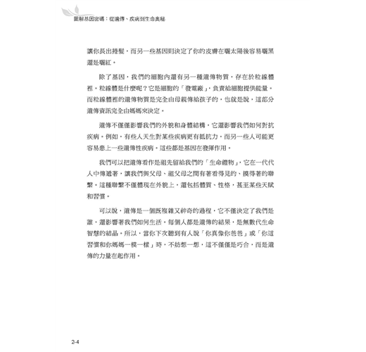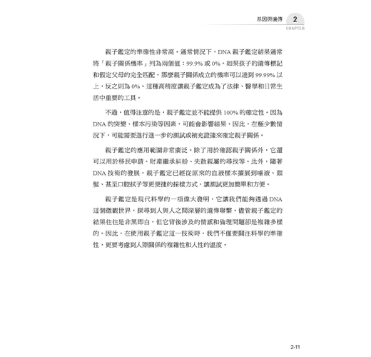 本書不講枯燥的專業術語,也不要求你有生物學的背景,而是用最通俗的語言,把你帶進基因的世界,讓你明白原來你從出生那一刻起,就已經隨身攜帶了一整套複雜的訊息系統,它們不僅定義了你的模樣,還可能影響你的思維方式、情緒反應、健康走向,甚至戀愛偏好。