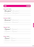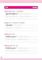 第三單元「短句習寫」:特別列出「招呼」、「寒暄」、「感謝」、「道歉」、「道別」、「祝福」等6類常用短句,透過簡單一句話,也能讓俄國人感受到溫暖!