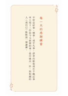 這本書收錄了一百則短短的提醒與練習,不需要花太多時間,就能在日常裡幫自己鬆開一點繃緊的狀態。像是「停止自我責備,當自己最友善的朋友」,或是「成長與否是你可以努力的,完美與否則是由別人決定」──這些句子讀起來像朋友的叮嚀,讓人在壓力中多了一點自在。