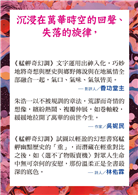 「透過人物、地點、音樂這三個支柱,勾勒、建構出我心目中光怪陸離卻也涵容一切的萬華,我永遠的心靈故鄉。」
