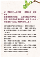 ♥阿飛這孩子,根本是「貓界社工」吧!哪裡有誤會,哪裡有人類需要被撫慰,他就一定在哪裡穿梭,要不要來拼圖喵兼差串門呀?他讓我想到每天在貓屋裡遇見的那些孩子:可能曾經被狠狠傷害過,但還是抱著對世界的善意與愛,願意不斷地嘗試,把握幸福的可能。真的好想揉揉阿飛的頭,也想對自己說:「我們都做得很好了喔!」 ——拼圖喵中途之家創辦人 燒賣(陳人祥)