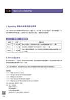 寫作部分聚焦Task 1圖表題與Task 2論說文結構;閱讀包含是非、配對與摘要題;聽力依四大Section分析題型與答題策略;口說則從Part 1日常問答到Part 3延伸討論皆有實戰指導。